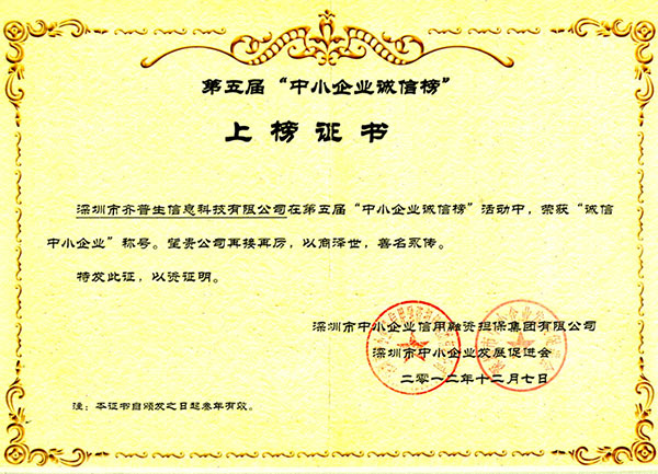 深圳市高新技術(shù)產(chǎn)業(yè)協(xié)會會員證書