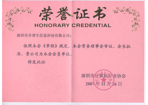 計(jì)算機(jī)行業(yè)協(xié)會會員榮譽(yù)(證書)