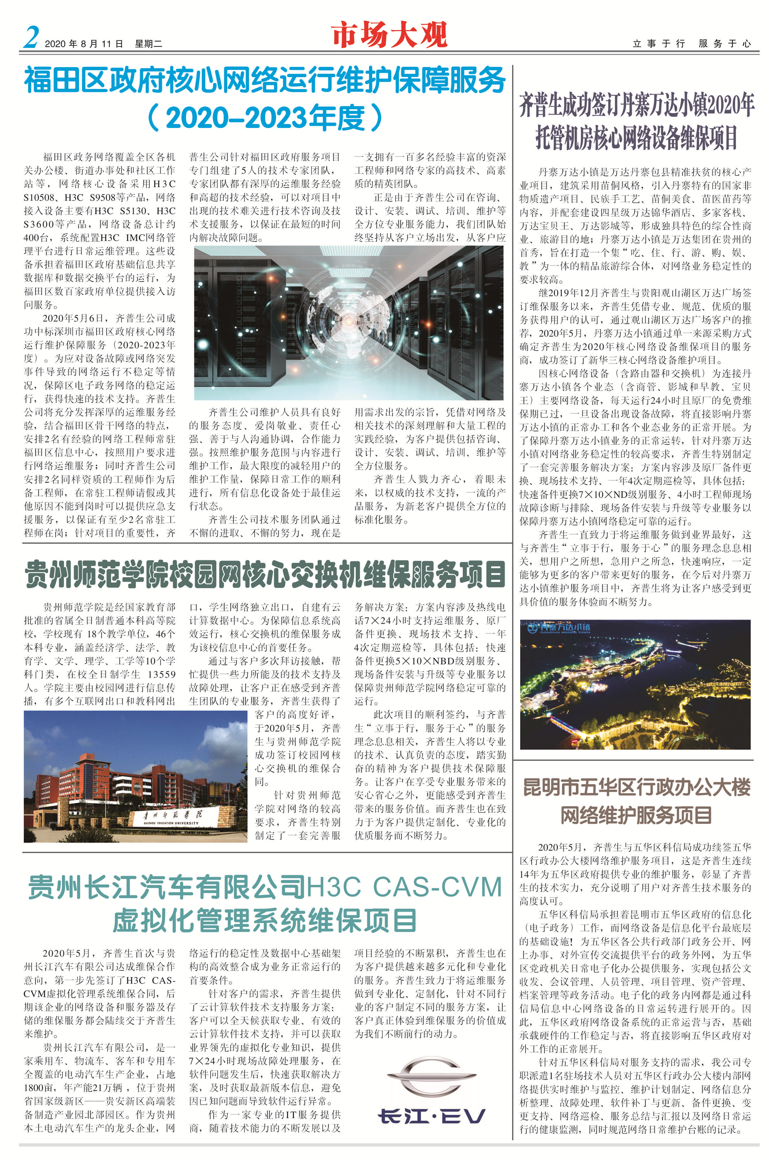 - 齊普生成功簽訂丹寨萬達(dá)小鎮(zhèn)2020年托管機(jī)房 核心網(wǎng)絡(luò)設(shè)備維保項(xiàng)目 2020-08-25
